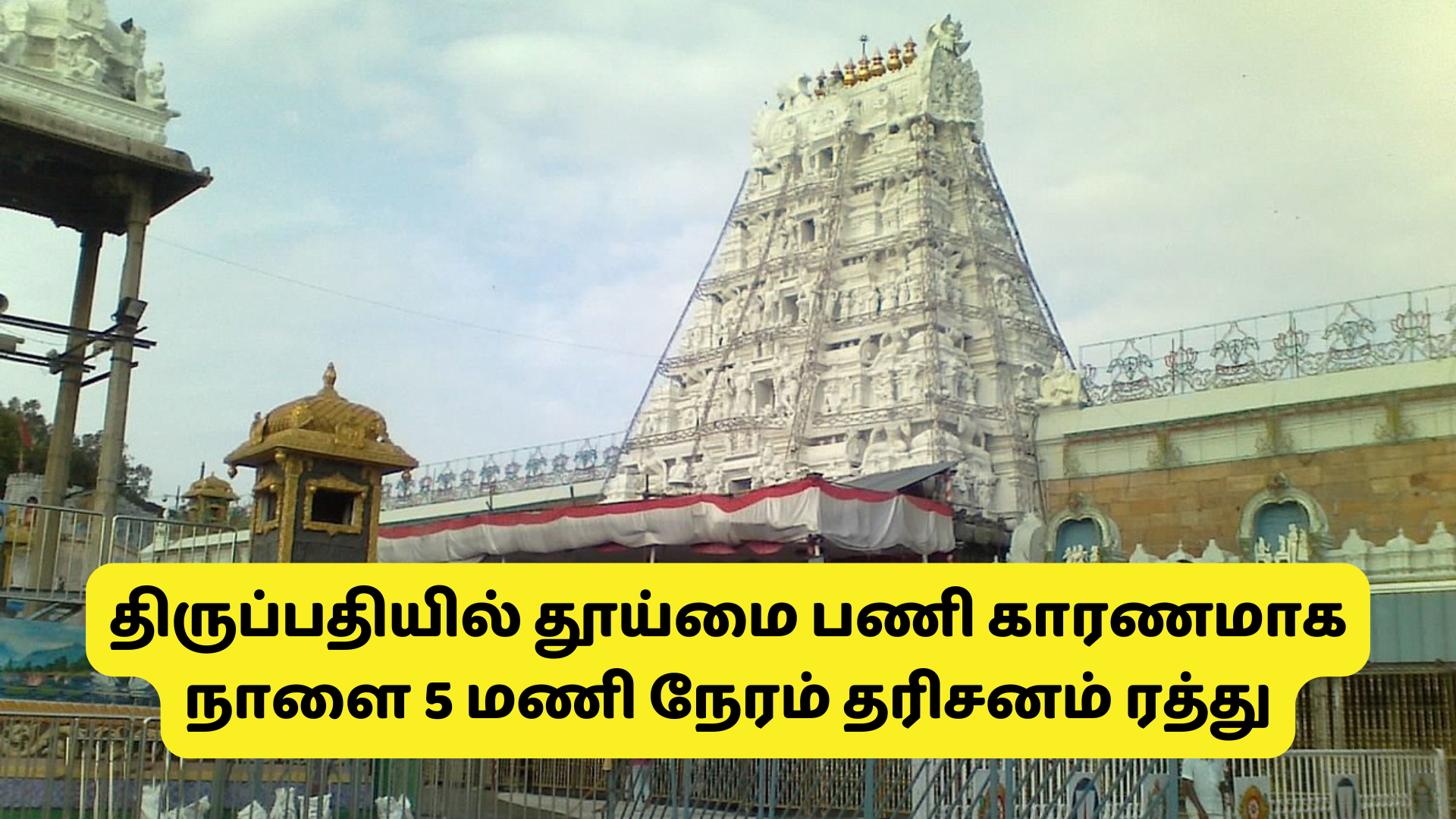 திருப்பதி வெங்கடாசலபதி கோயிலில் தூய்மை பணி காரணமாக நாளை 5 மணி நேரம் தரிசனம் ரத்து செய்யப்பட்டுள்ளது என்ற செய்தி பக்தர்களிடையே முக்கிய கவனத்தை பெற்றுள்ளது. இந்த விரிவான கட்டுரையில் இது குறித்த முக்கிய தகவல்களை காண்போம்.